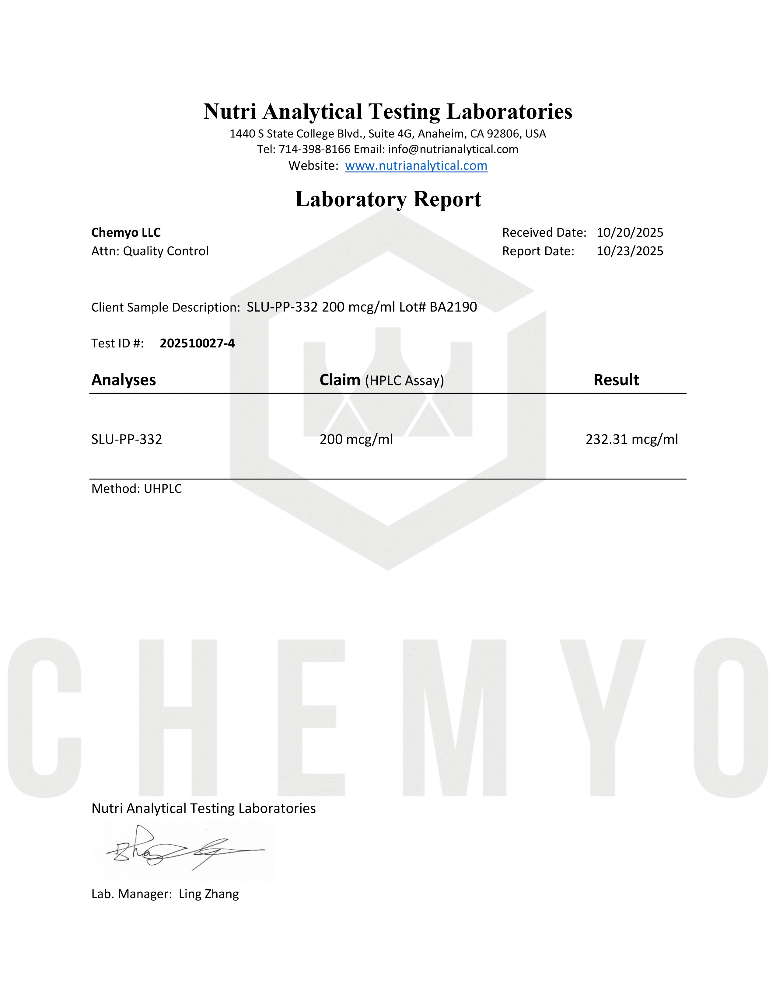 BA2190 SLU-PP-332 HPLC SPECTRAL