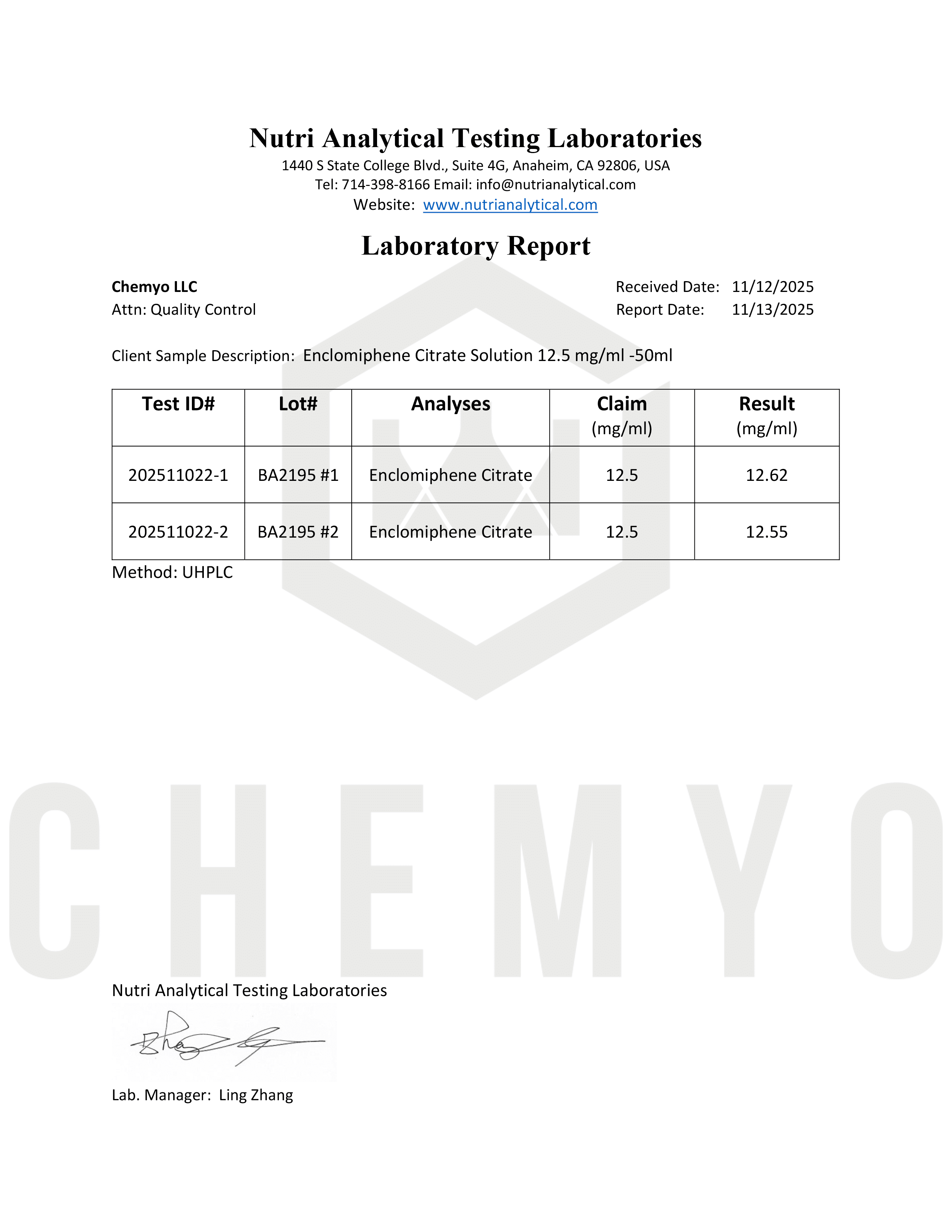 BA2195 #1-#2 ENCLOMIPHENE CITRATE CONCENTRATION
