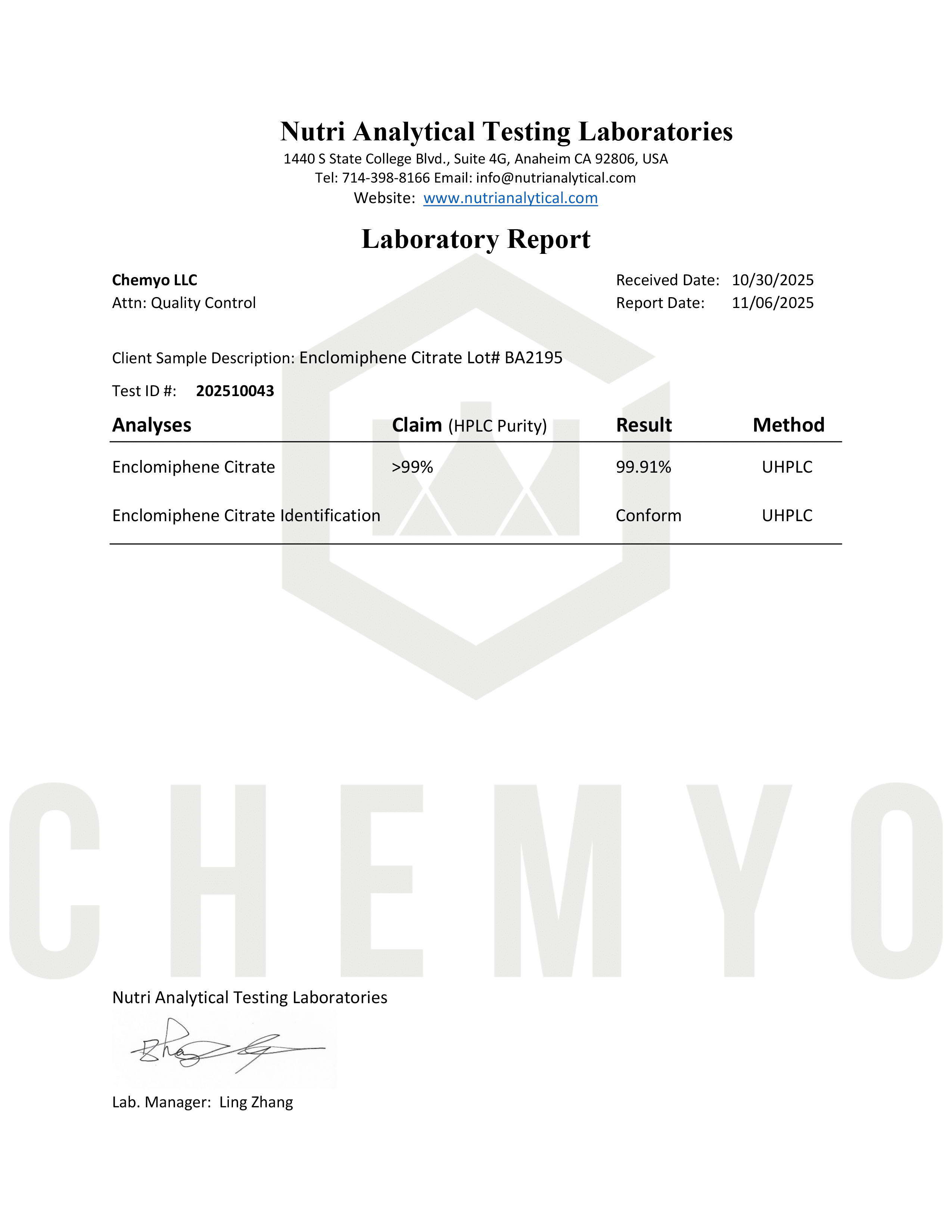 BA2196 ENCLOMIPHENE COA