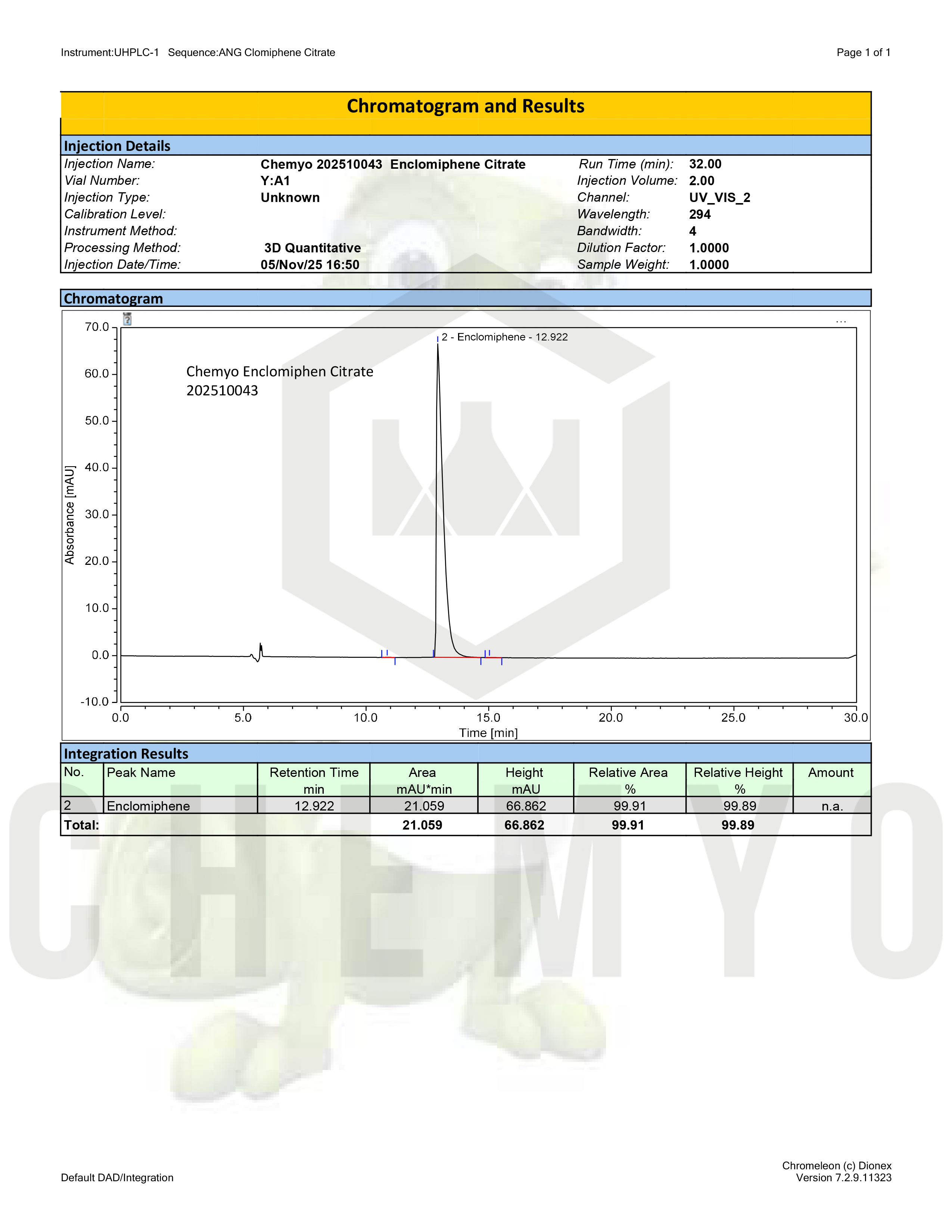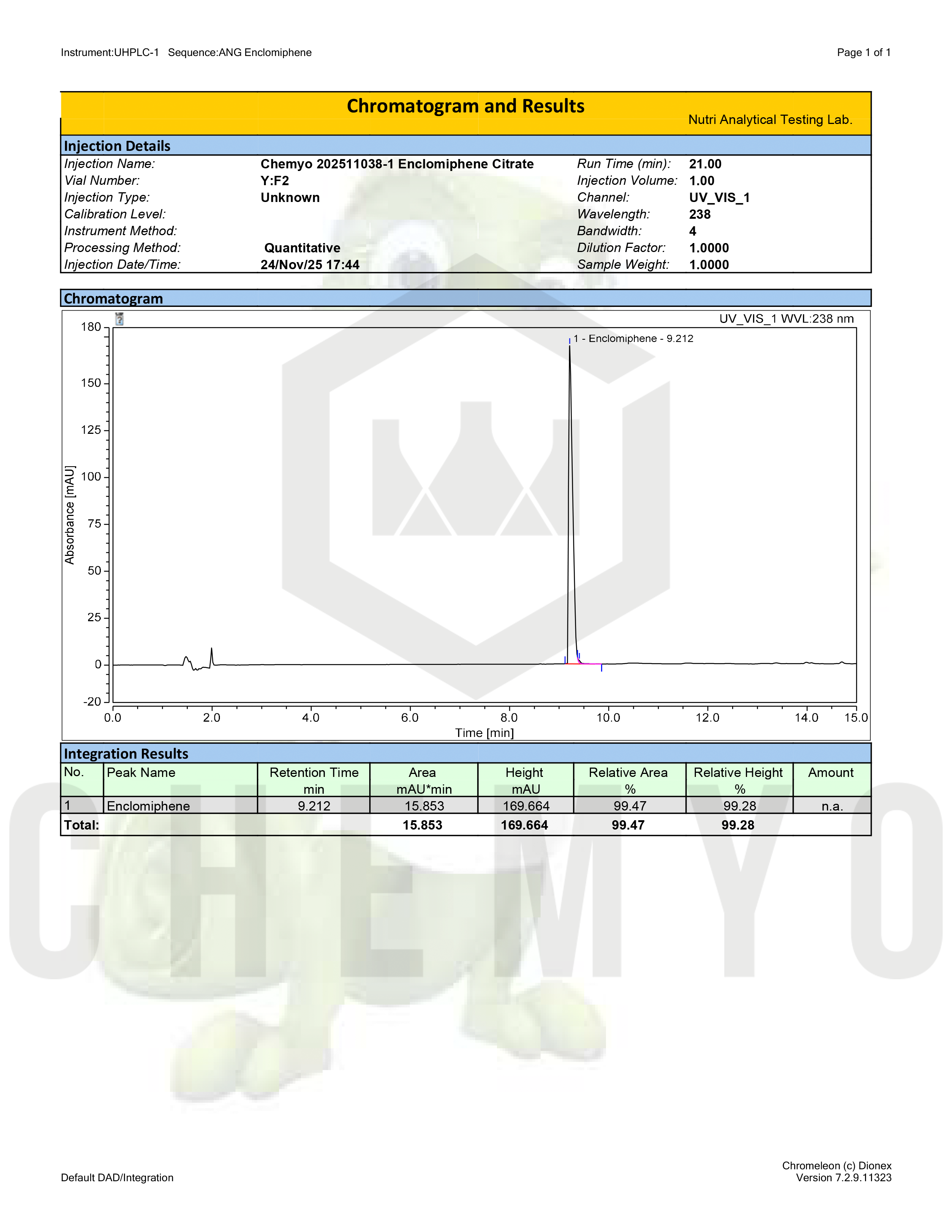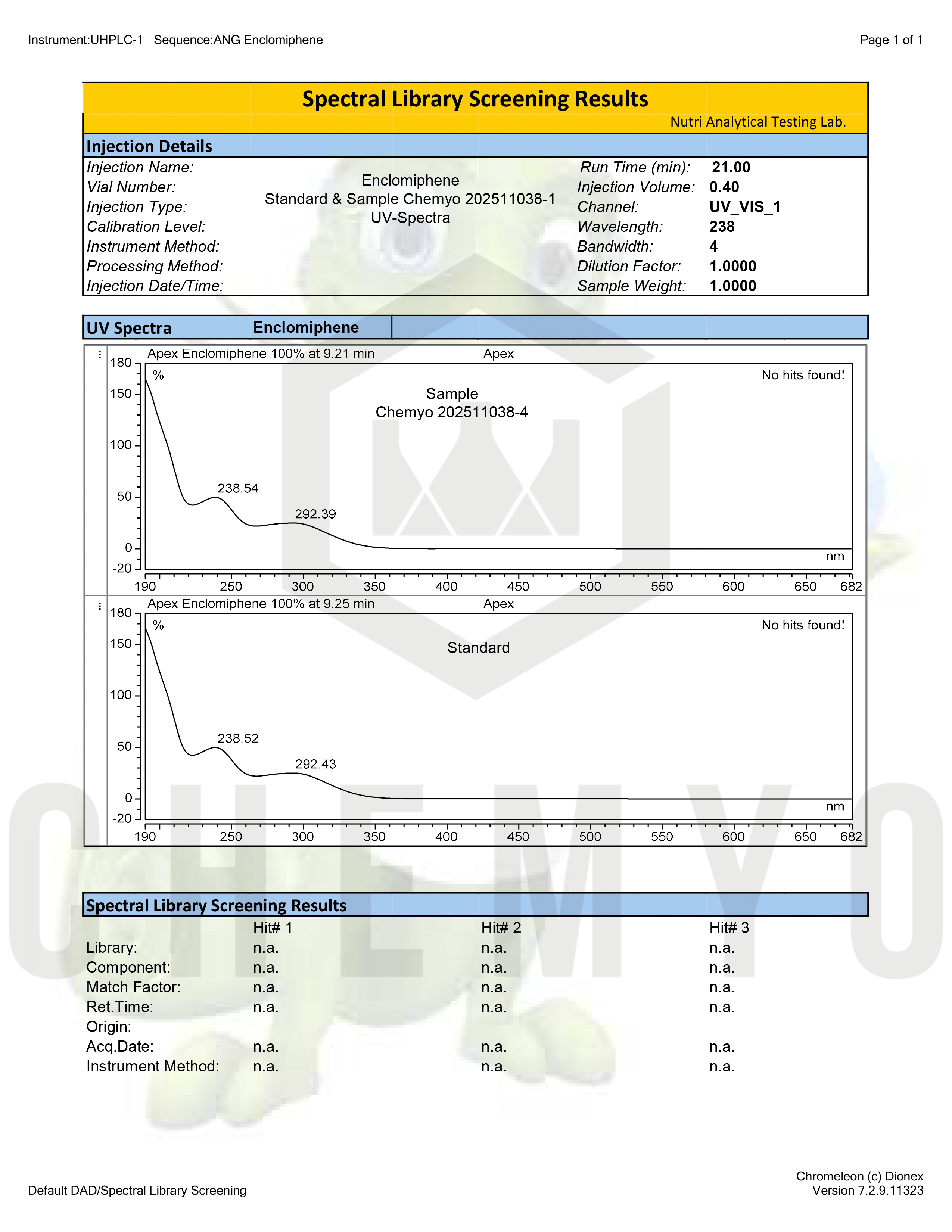 BA2196 ENCLOMIPHENE HPLC SPECTRAL