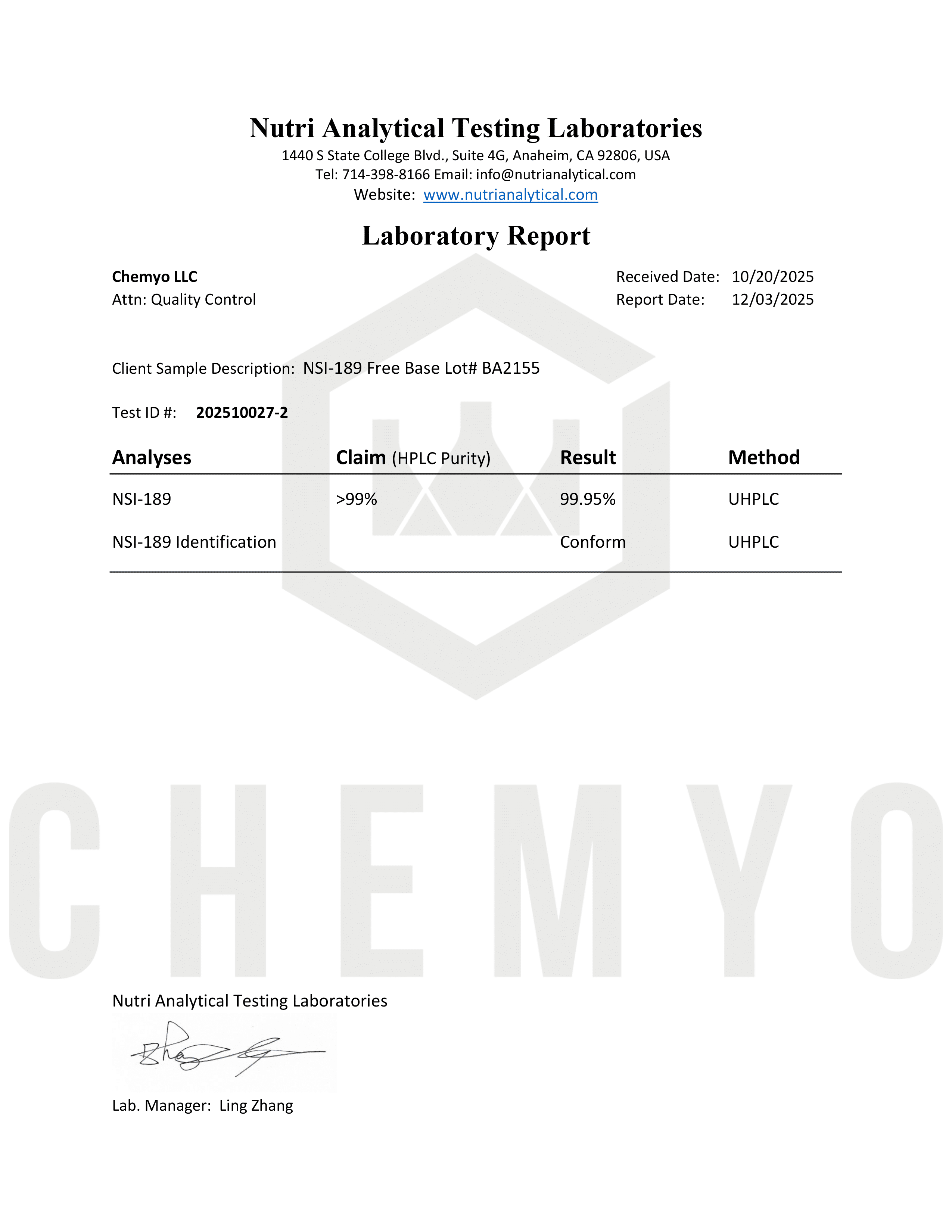 BA2178 NMN FTIR-HPLC Results