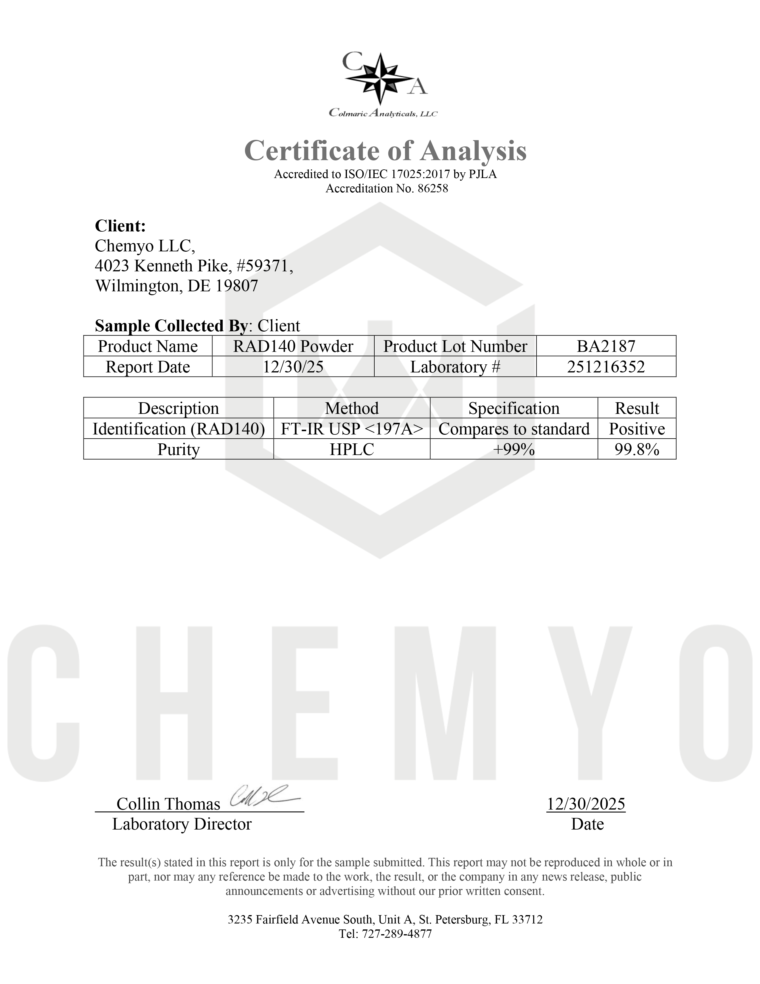 BA2187 RAD140 FTIR – HPLC Results